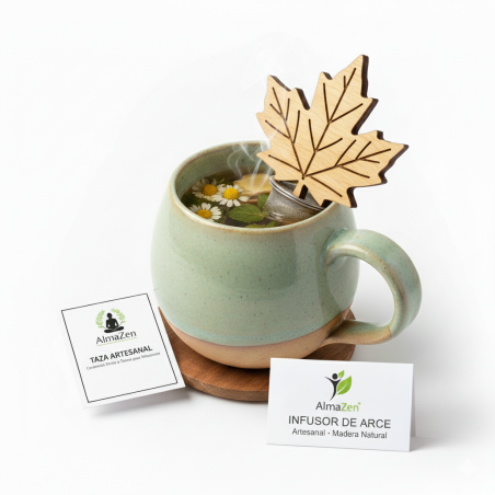 En AlmaZen creemos que la bondad también forma parte de los pequeños rituales diarios. El Kit de Infusión Consciente AlmaZen , compuesto por una taza y un infusor , está diseñado para acompañarte en esos momentos de pausa que te invitan a reconectar con la naturaleza.