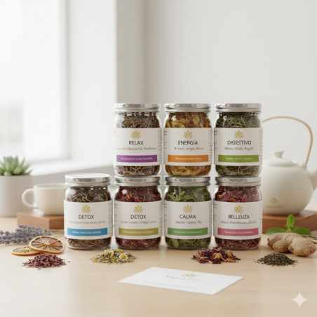 Cada infusión se elabora con ingredientes cuidadosamente seleccionados. Todos los ingredientes son naturales y sin azúcares añadidos. Ofrecen una experiencia aromática y terapéutica que transforma tu rutina diaria. Este pack te permite disfrutar de un ritual de bienestar adaptado a cada momento.